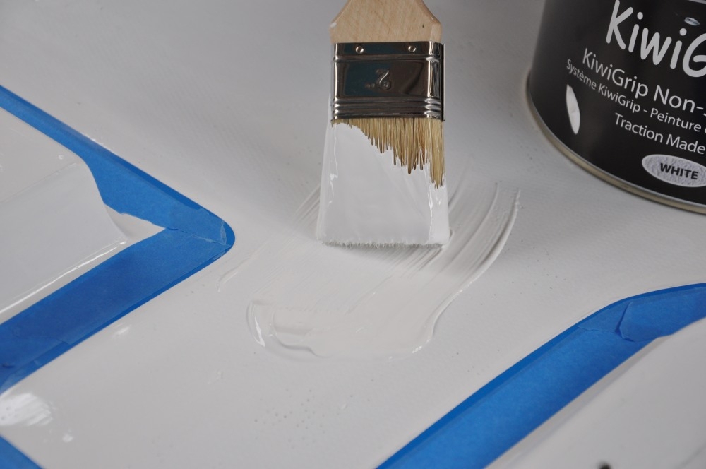 Wieder sind wir einen gehörigen Schritt vorangekommen. Das Deck ist zweimal lackiert und mit dem Antirutschbelag “Kiwi-Grip” versehen. Ein tolles Zeug! Wir sind wirklich begeistert.